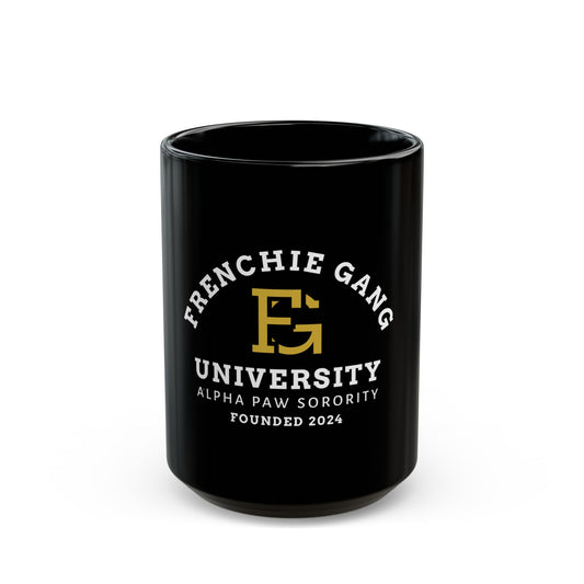 Frenchie Gang University Mug — "Alpha Paw Sorority" Black Coffee Cup (11oz/15oz)